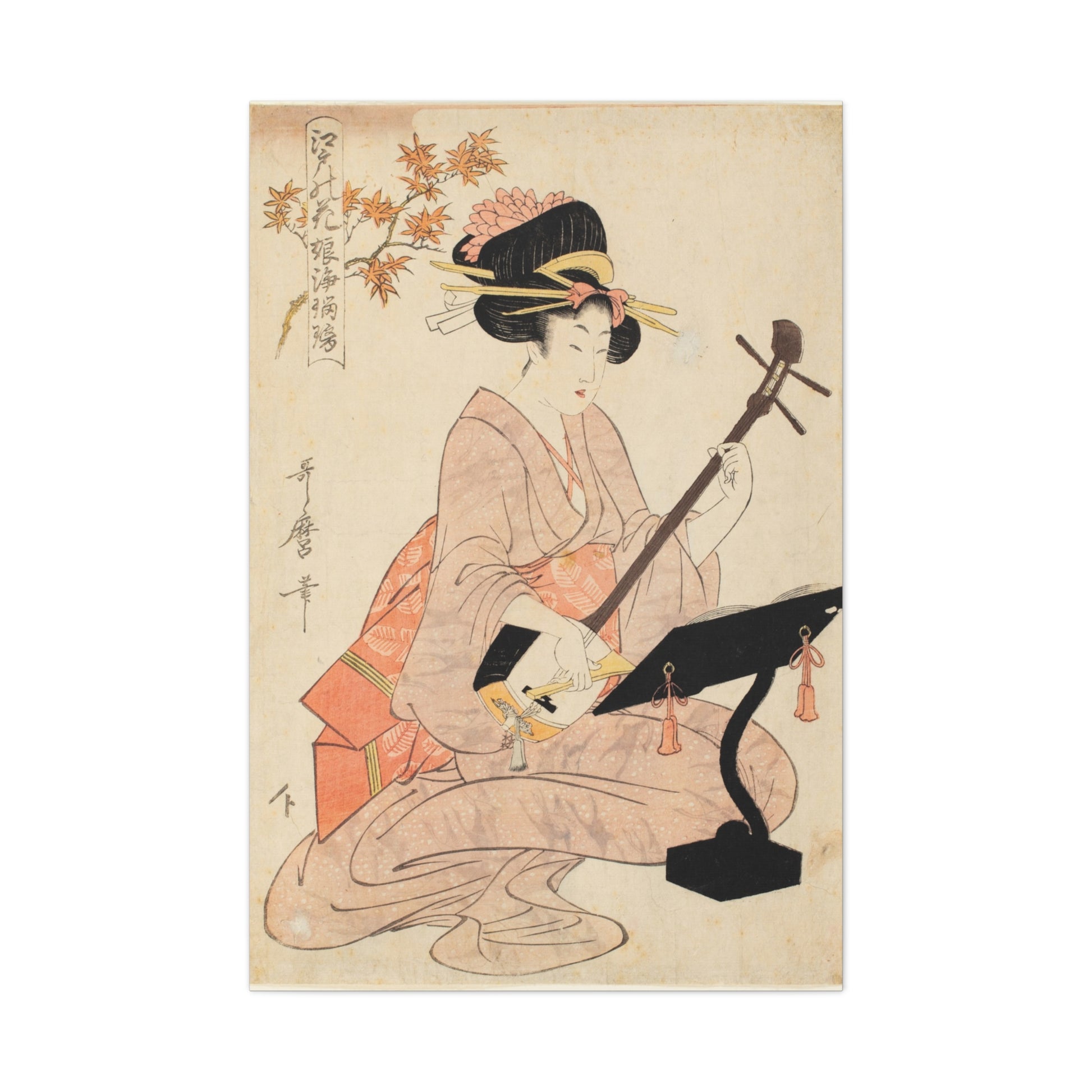Maple Leaves Koyo and Shamisen | Kitagawa Utamaro - Canvas -