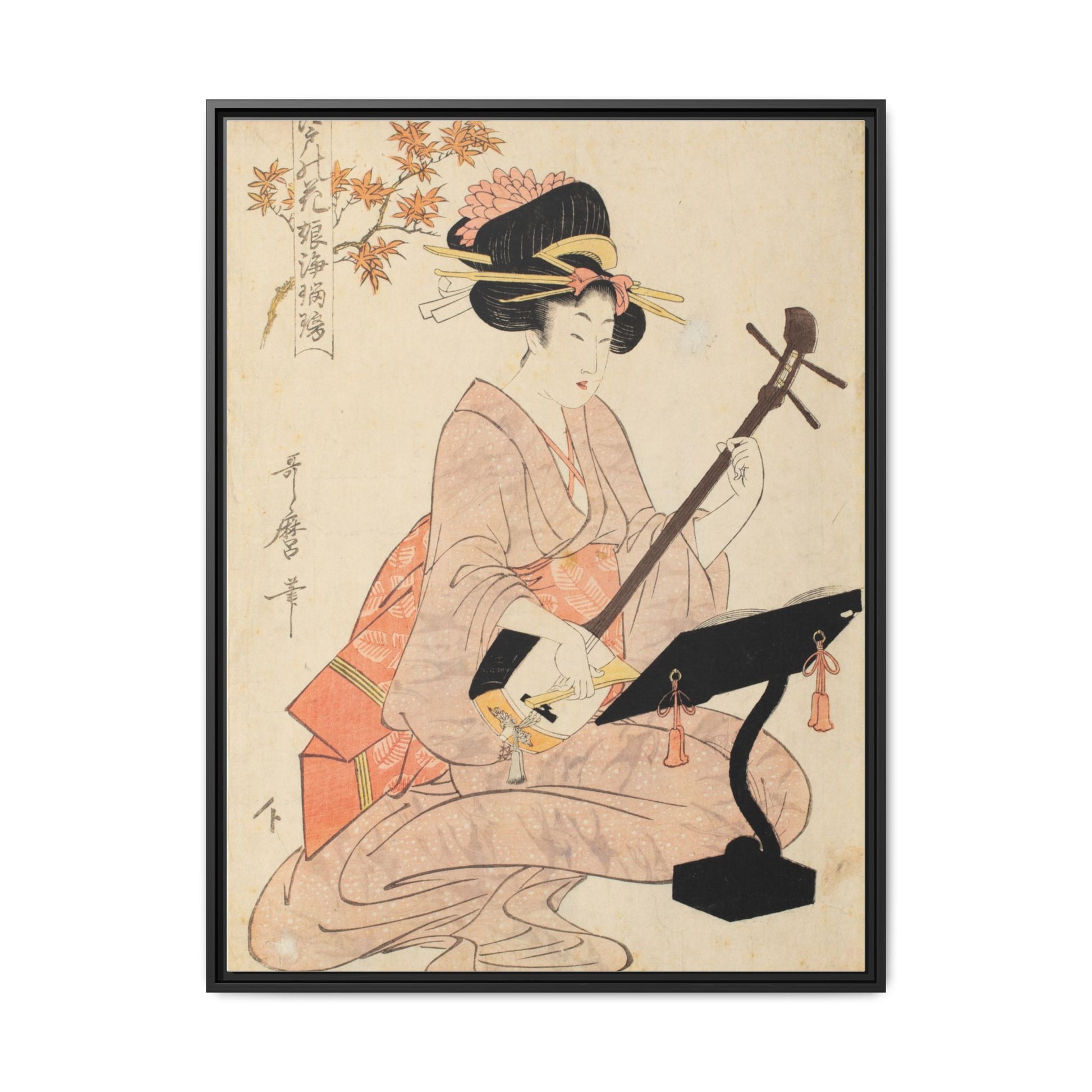 Maple Leaves Koyo and Shamisen | Kitagawa Utamaro - Framed -